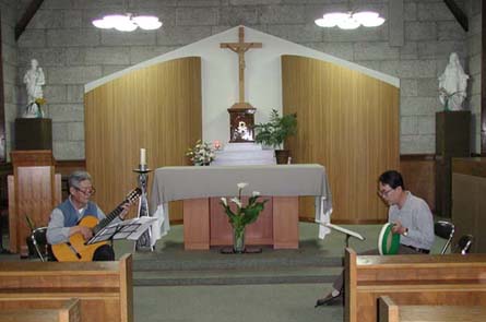 2002年6月3日から始めた、毎週月曜日の「朱い本」連続ライブは、12月9日をもって一応終りといたしました。仁豊野出張ライブも含めて計24回、お客さんの数は延べ138人、通常は2人〜5人ぐらい、夏の暑い日や台風接近の時などお客さんなしの日も何度かあった。そんな日のことを振り返って、相棒のギターの河野さんは「誰も居ないのに、なんか誰かいたはるような気がしたなあ」と言った。我々のライブはそんなコンサートだったのである。始めは「習作ライブ」と銘打っていたが、これは毎回修正を加えて行くと言ういみであった。クラシックの世界では、精一杯仕上げたものを1回のコンサートで発表するというのが慣習であるが、我々の連続ライブは、皆さんにとって戸惑いであり、やっているのが素人二人ということもあって、総じてコンサートとしては認知されなかった、ようである。かつて、大阪ルネッサンス合唱団では、1999年の「ダニエル物語」、2000年の「ランフィパルナーゾ」と夫々2回公演を行ったが、それだけでも珍しい事であるのに、まして半年間毎週連続ライブとなると、これはもう画期的なことなのではないでしょうか?